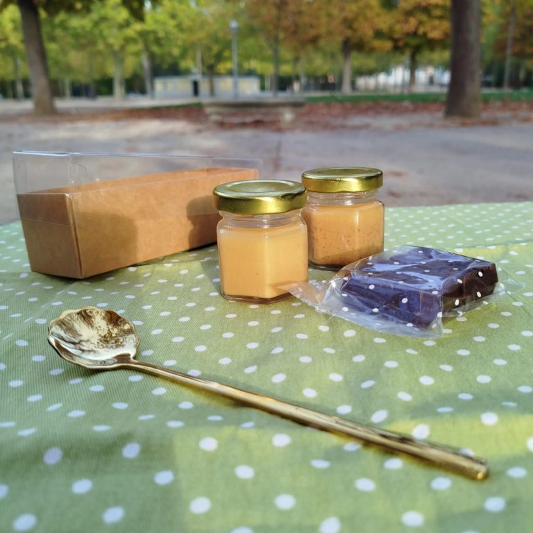 Pack con 2 cremas artesanales y 6 mini tabletas. Adaptamos sabores y combinaciones para que reflejen tú identidad.
